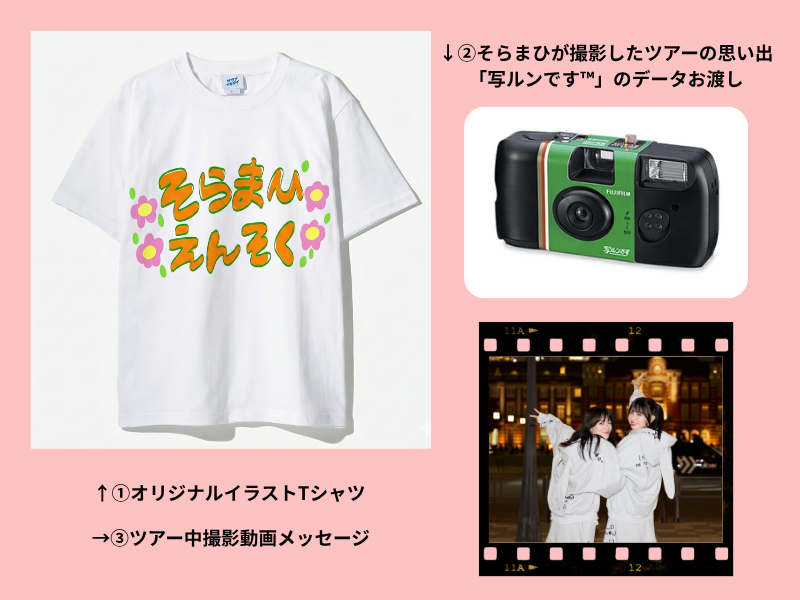 そらまひのお二人が、ツアー中の思い出を撮影した「写ルンです™」の生データをプレゼント。フィルムならではのエモい距離感を楽しめます。